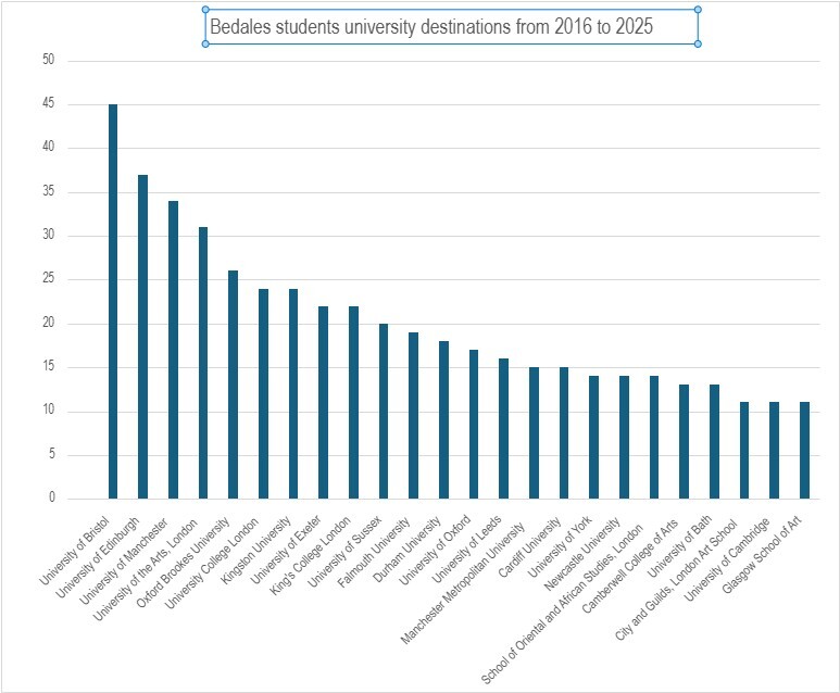 Top destinations of Bedales leavers over the last 10 years